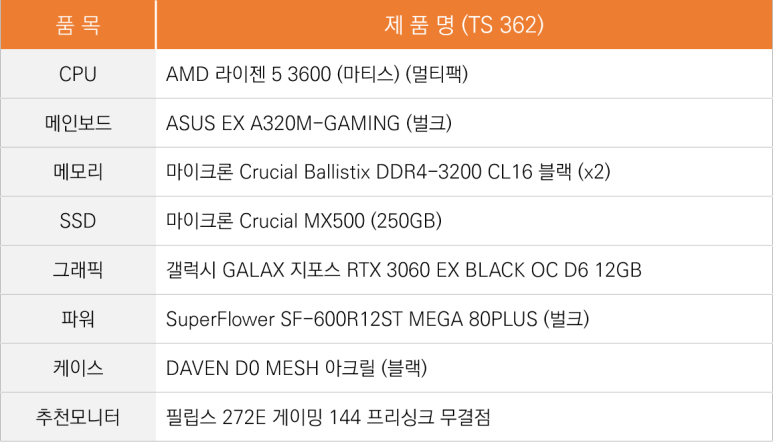 스펙 : AMD 라이젠 5 3600 + RTX 3060