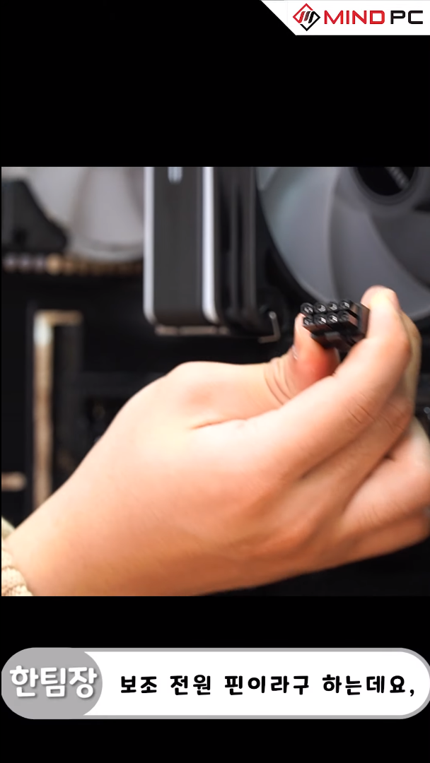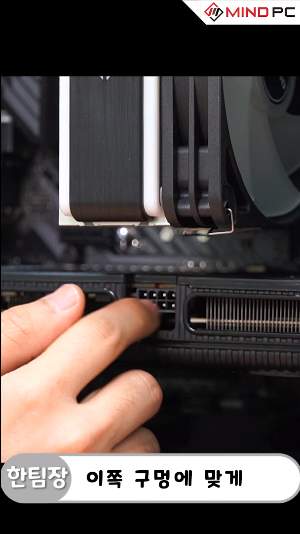 그런 다음, 메인보드의 보조전원핀을 그래픽카드 구멍에 맞게 연결시켜주세요.