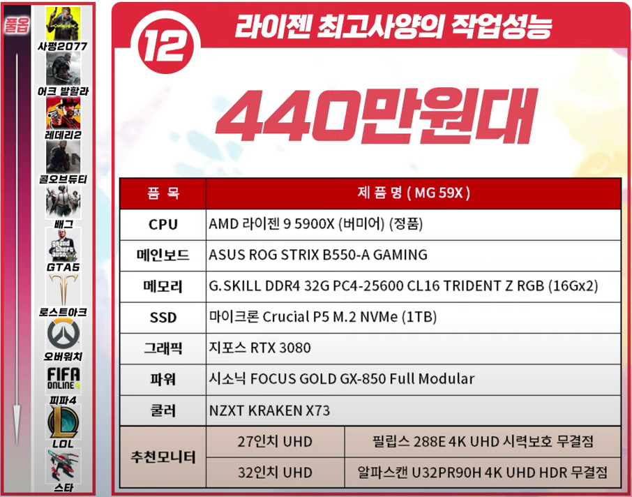 여기까지 총 12가지 30만 원대에서 440만 원대 PC 견적을 소개해드렸습니다.