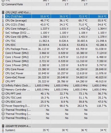 CPU 최고 온도는 72.5도, 그래픽카드 최고 온도는 61도가 나왔습니다.