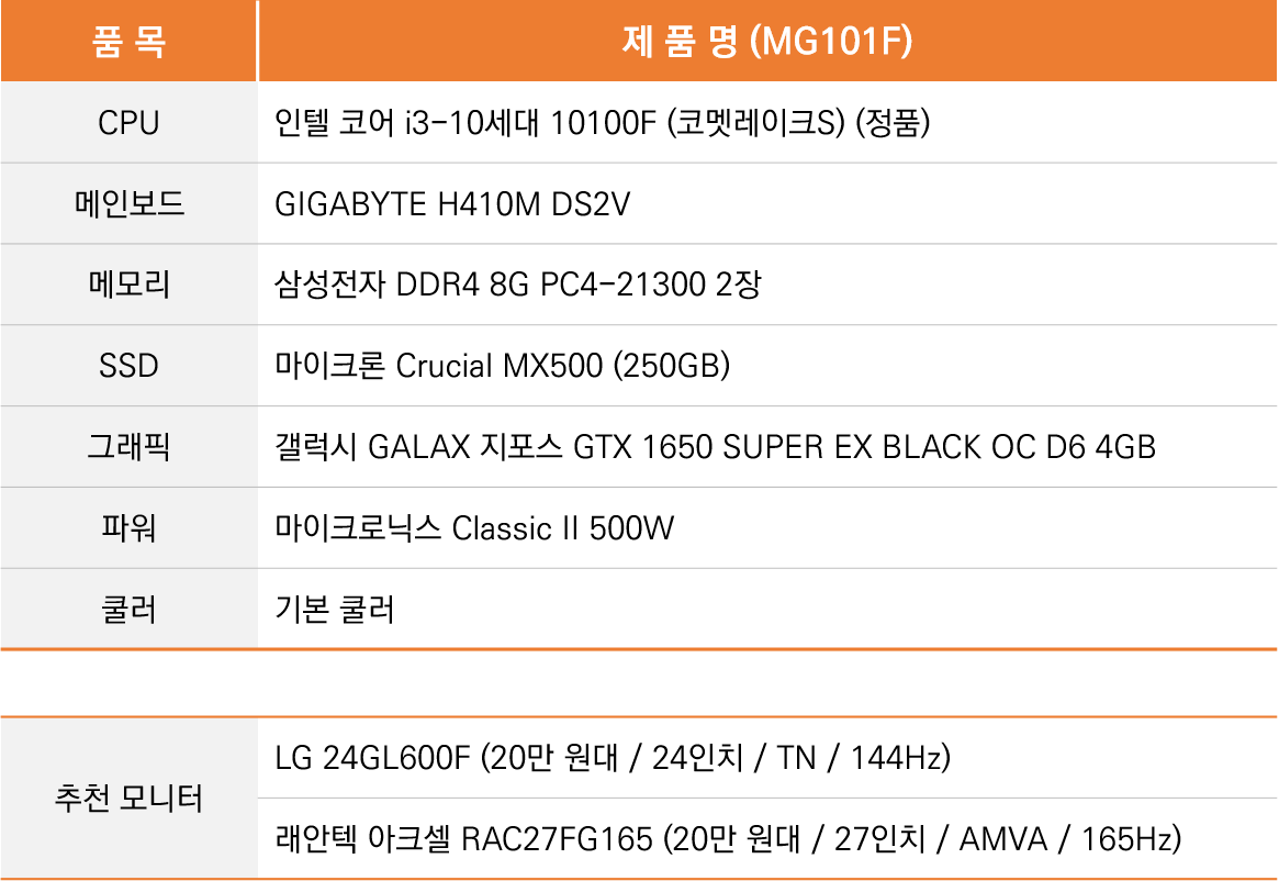 게이밍PC 구성하실 분들은 이 견적부터 보기 시작하면 되실 것 같습니다. 오버워치, 피파, 리그 오브 레전드 등의 웬만한 온라인 게임을 플레이할 수 있는 최저가 견적입니다. 배틀그라운드는 최하옵에서 하옵까지 옵션으로 플레이할 수 있습니다.