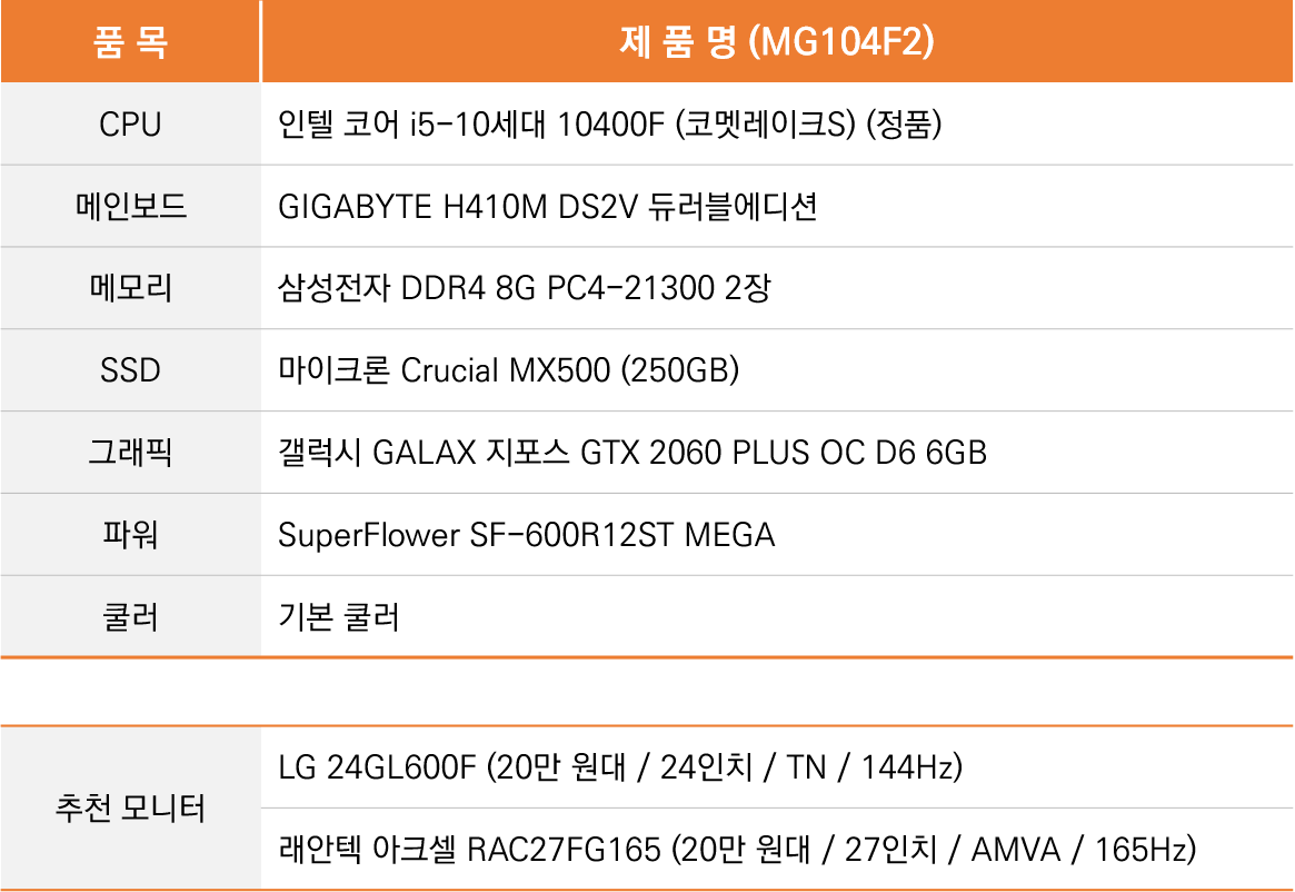 인기 있는 최신 게임을 중~하옵 성능으로 플레이할 수 있는 PC 견적입니다. 배틀그라운드의 경우 국민옵션으로 원활하게 플레이 가능합니다.