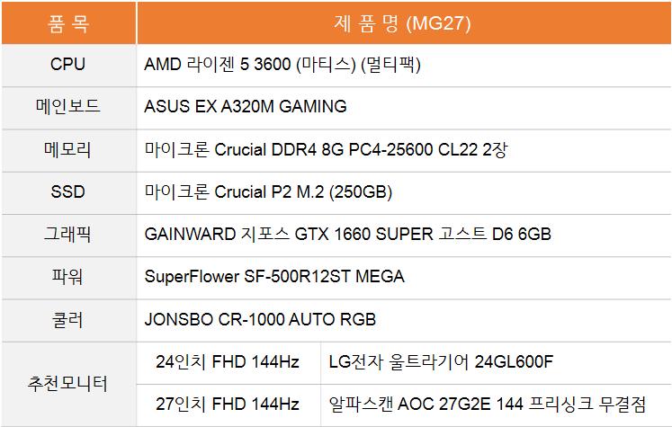 그래픽카드는 GAINWARD GTX 1660 SUPER 고스트 제품으로 구성했으나 그래픽카드의 재고가 많지 않기 때문에 해당 제품이 품절될 경우 다른 제조사의 제품으로 변경될 수 있습니다.