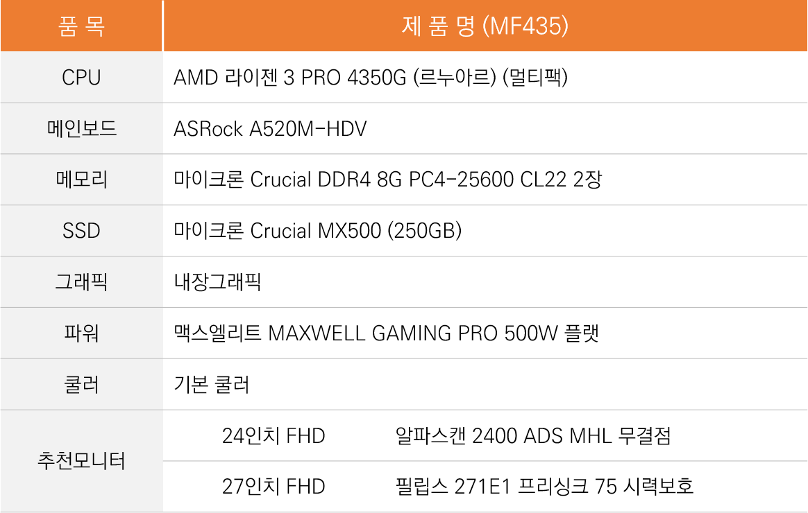 라이젠 르누아르 4650G CPU로 구성된 보급형 사무용 PC 견적입니다.