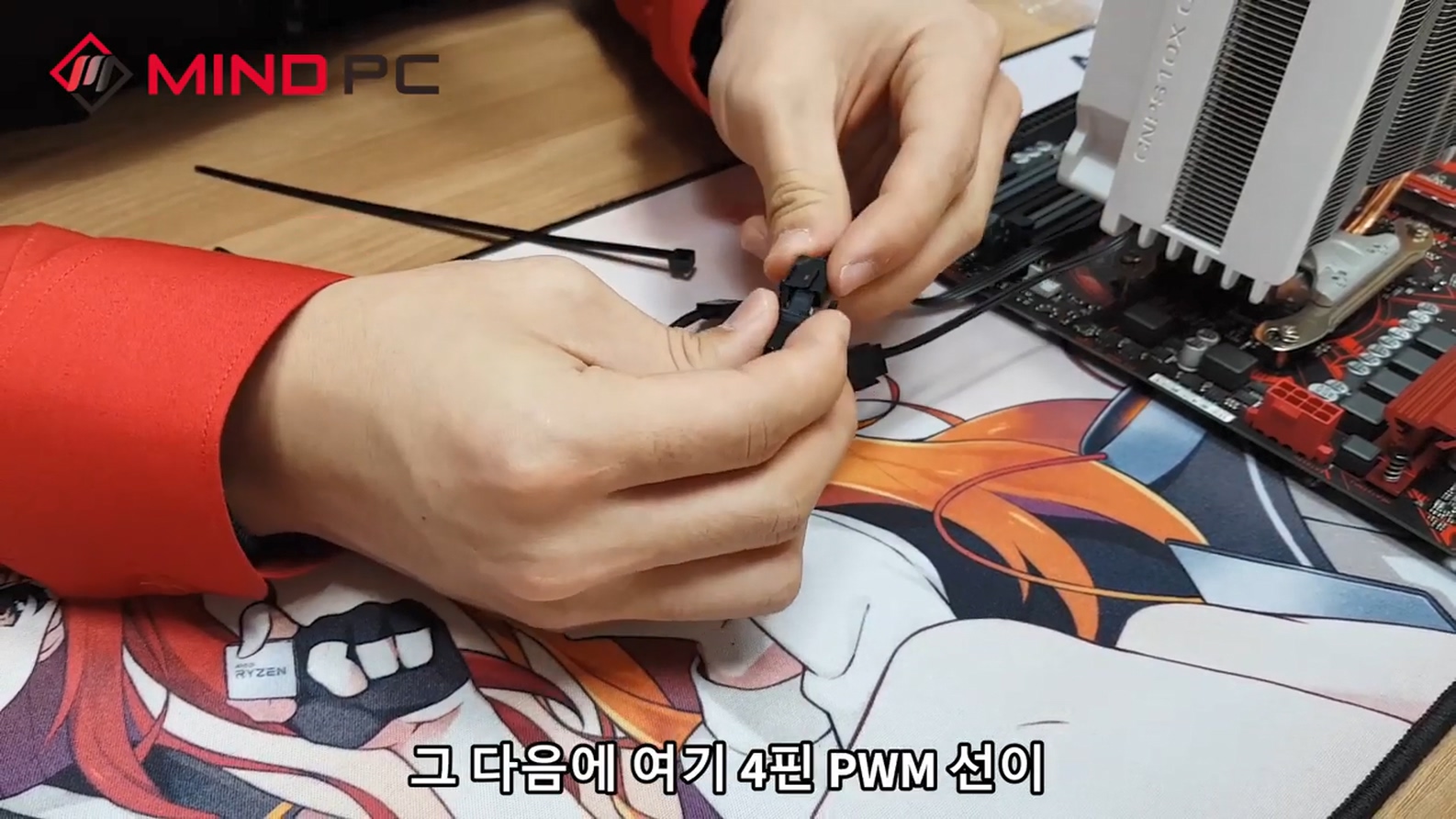 선을 보이지 않게 쿨러 아래쪽으로 넣어주셔도 되고, 케이블 타이로 묶어서 정리하면 깔끔하게 선이 정리됩니다.