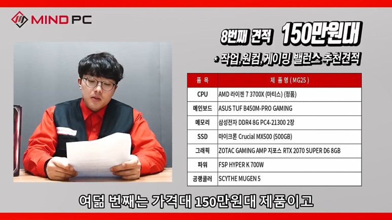 2월 월간 견적은 마인드피씨 유튜브 채널에서 영상을 통해 확인할 수 있습니다.