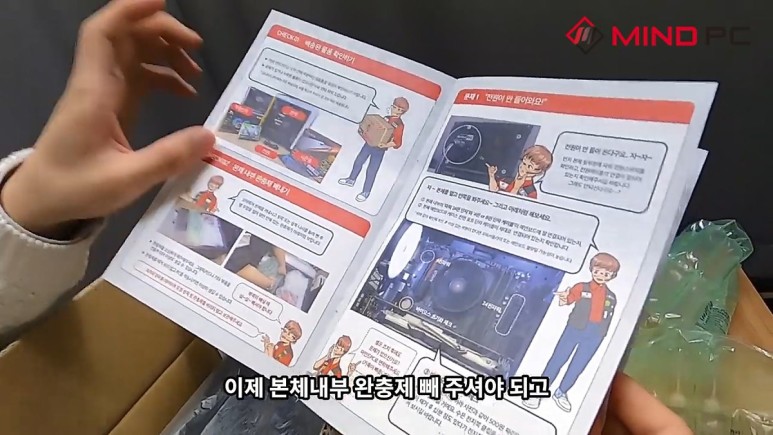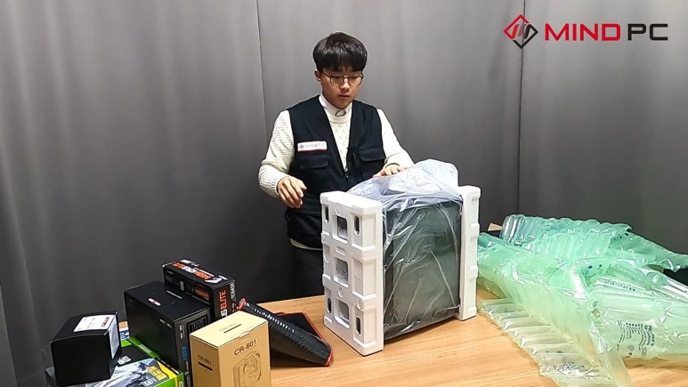 그런데 그러다 보니 마인드PC에서 구매한 컴퓨터를 받아보신 분 중, “이 부품 상자들은 다 뭐예요?”, “이거 조립이 안 돼서 온 거 아닌가요?” 문의하시는 분들이 많습니다. 또 본체 내부의 포장재를 제거하지 않고 사용하는 고객님도 계시더라고요.