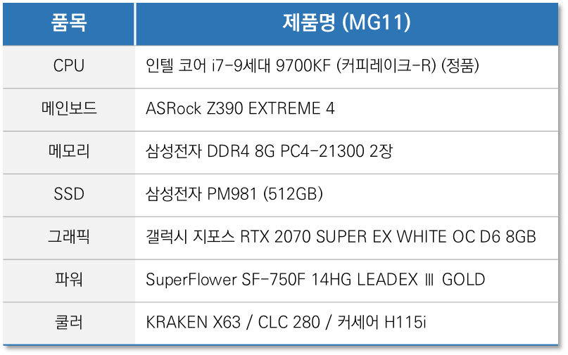 쿨러 제품은 기존엔 애너맥스 제품을 추천했는데요. 재고 수급이 워낙 어려워서 ‘NZXT KRAKEN, EVGA CLC, 커세어 H115i, H150i’ 제품 사용을 권장합니다.