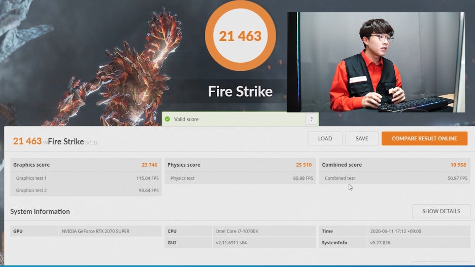 컴바인드 스코어는 CPU, 메모리, 그래픽카드를 합친 점수인데요, 10958점으로 11000점에 가깝게 나왔습니다. 컴바인드 스코어가 10000점이 넘은 거면 꽤 높은 사양의 PC라고 보시면 될 것 같습니다.