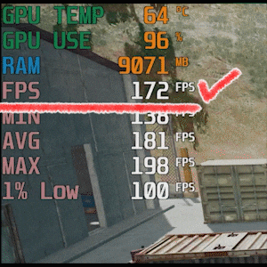 FPS는 현재 표시되고 있는 프레임 수치, MIN은 최소 프레임 수치, AVG는 평균 프레임 수치, MAX는 최대 프레임 수치, 1% LOW는 하위 1% 프레임 수치입니다. 하위 1% 프레임 수치는 높으면 높을수록 전반적으로 게임 플레이가 굉장히 안정적이고 부드러워집니다.