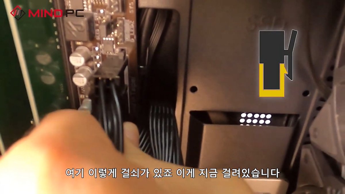 24핀 전원 커넥터를 뺄 때는 고정된 멈치를 눌러서 빼주셔야 합니다.