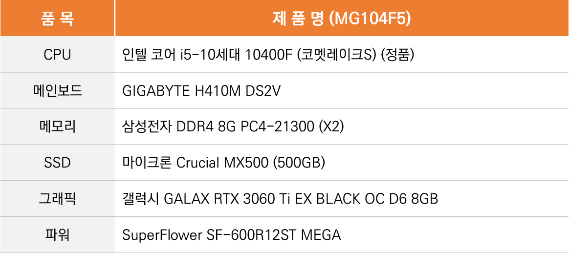 '나는 라이젠 보다 인텔 CPU를 선호한다', '100만 원대의 가성비 게이밍 PC를 원한다', '3060 Ti 본체 견적을 최대한 저렴하게 구성하고 싶다' 하시는 분들은 이 본체 제품이 좋은 해답이 될 것 같습니다.
